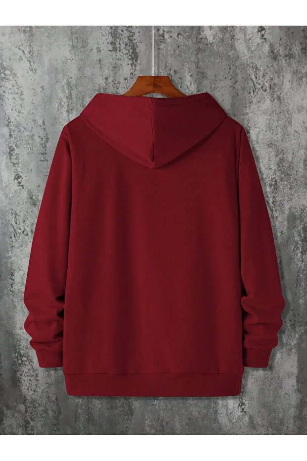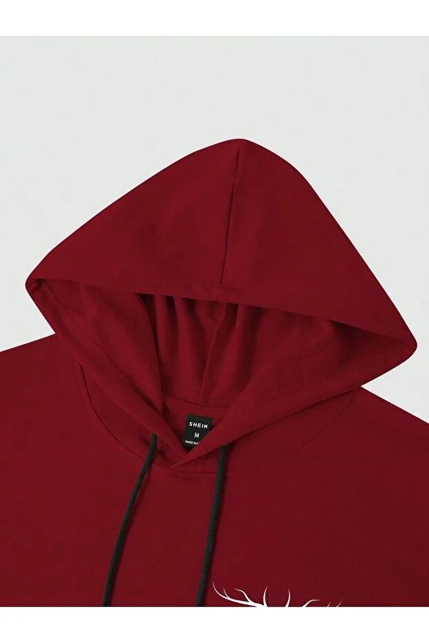 kanat Ren geyiği ön baskılı bordo oversize kapşonlu sweatshirt hoodie