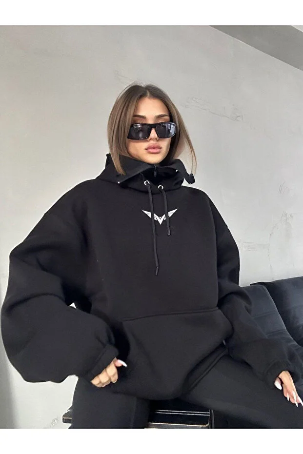 Oversize kalıp, elastik bel ve bilek detayları sayesinde maksimum hareket özgürlüğü sağlar.