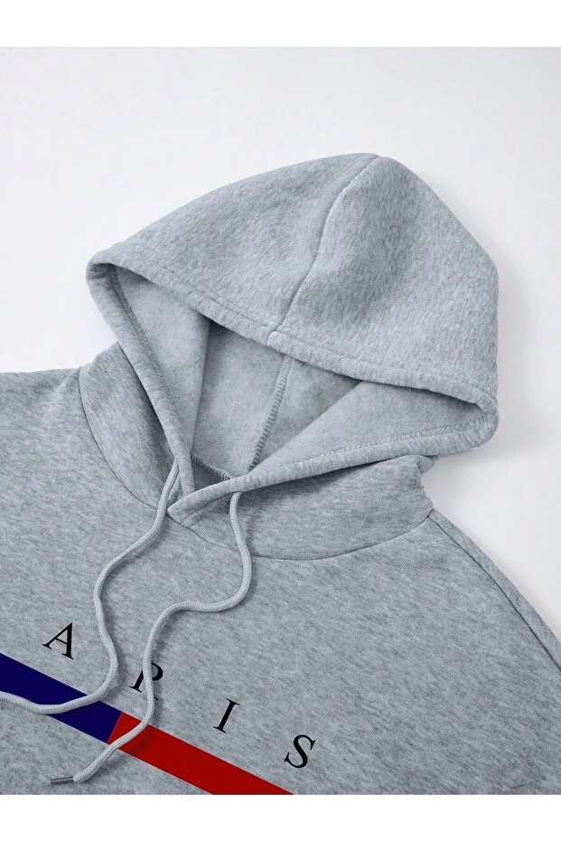 paris ön baskılı oversize kapşonlu sweatshirt hoodie