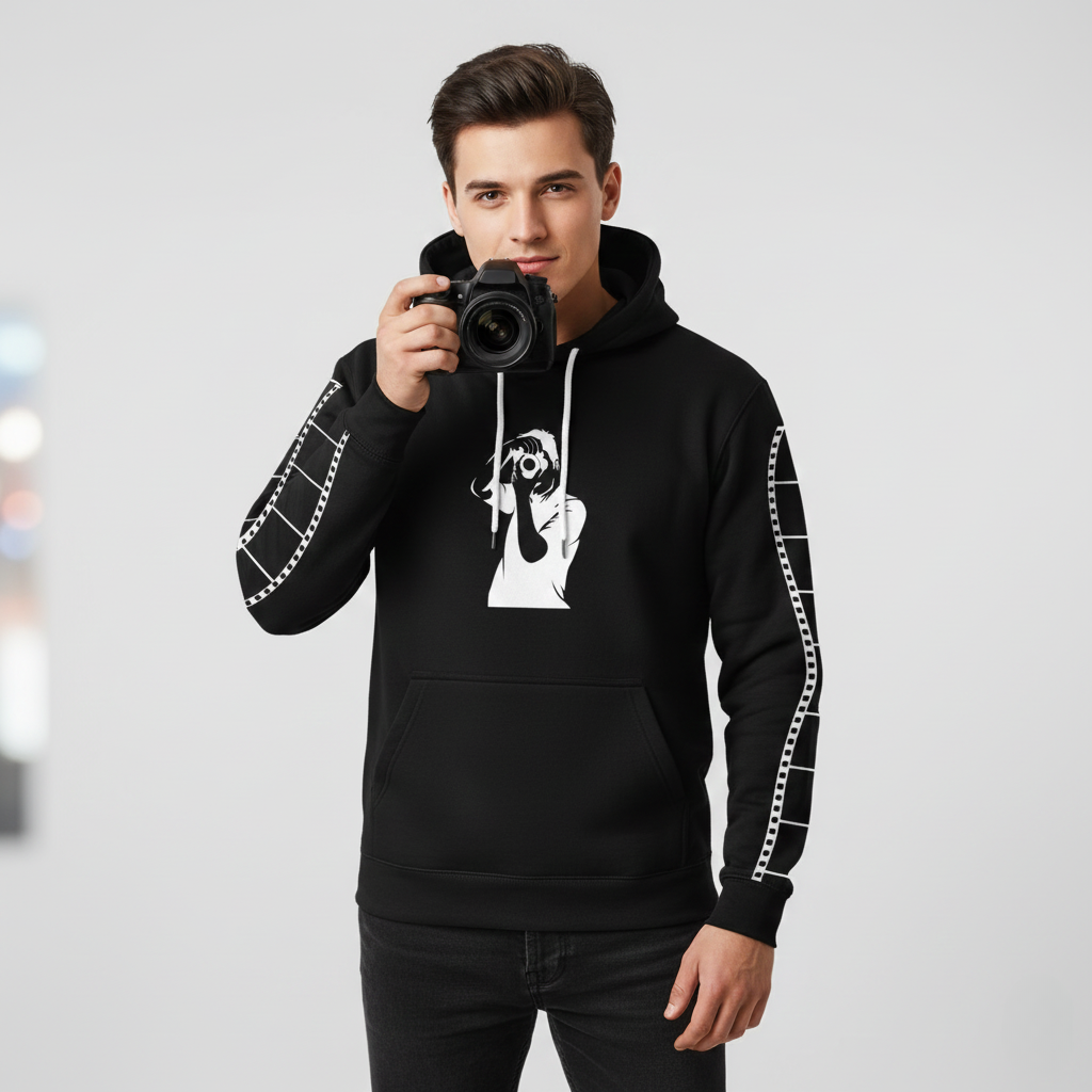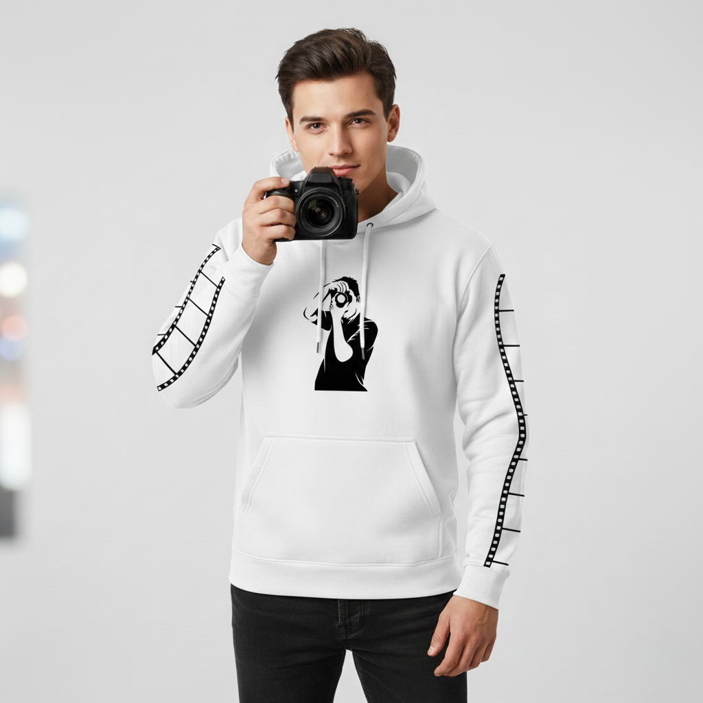 Fotoğraf çekmeyi bir yaşam biçimi haline getirenler için özel olarak tasarlanan bu sweatshirt, hem konforu hem de sanatsal detayları bir araya getiriyor. Ön kısımdaki ikonik fotoğrafçı silüeti ve kollardaki yaratıcı film şeridi baskısı ile sıradanlıktan uzaklaşın.