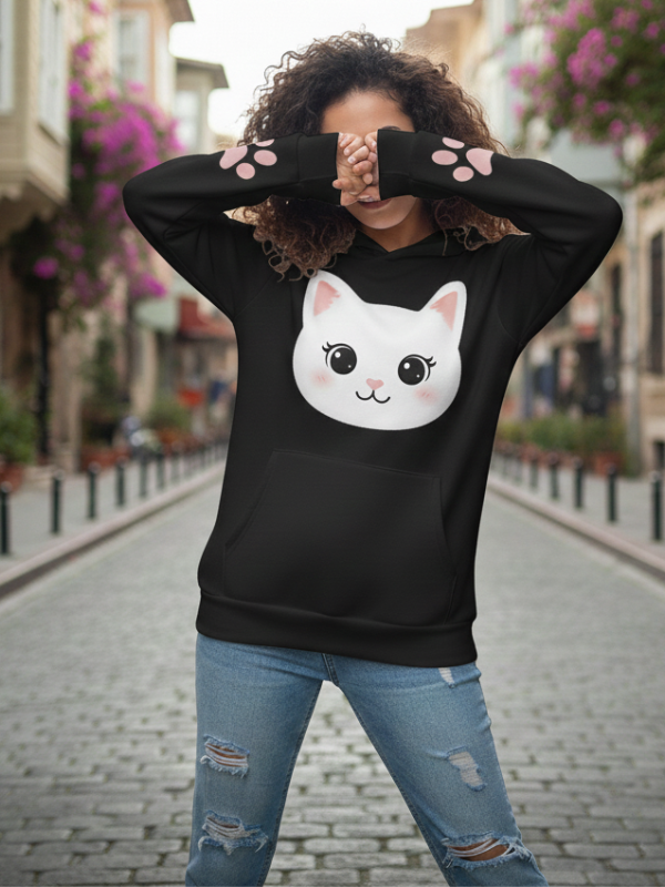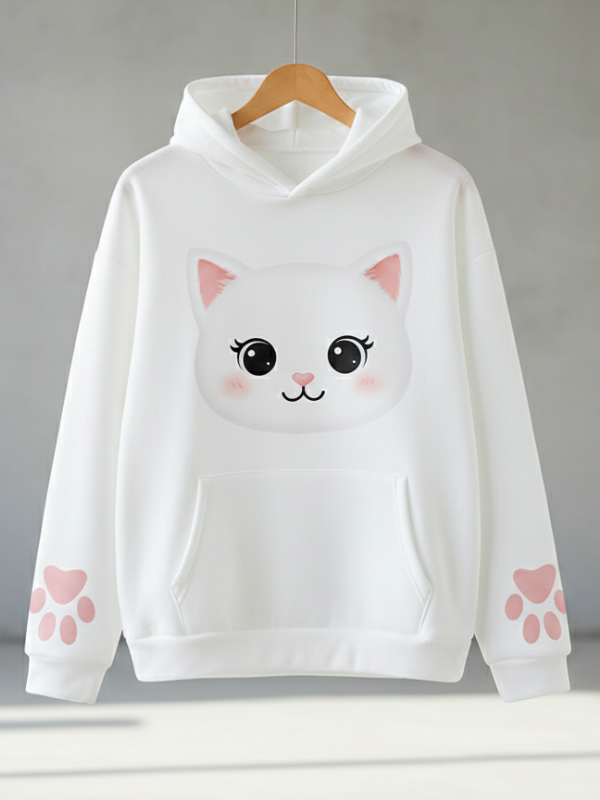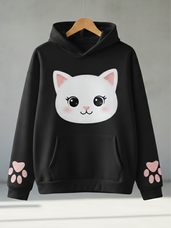 Sevimli ve Stil Sahibi: Kedi Temalı Genç Hoodie