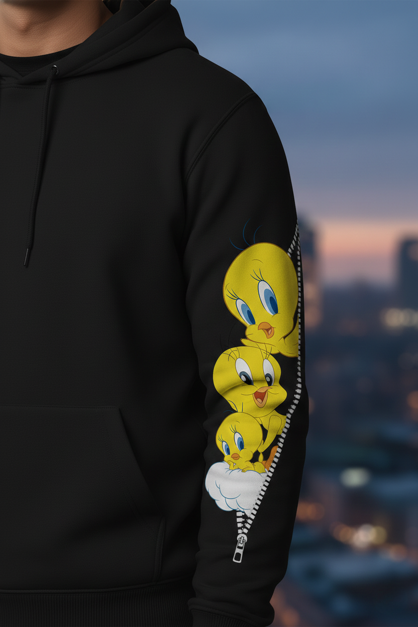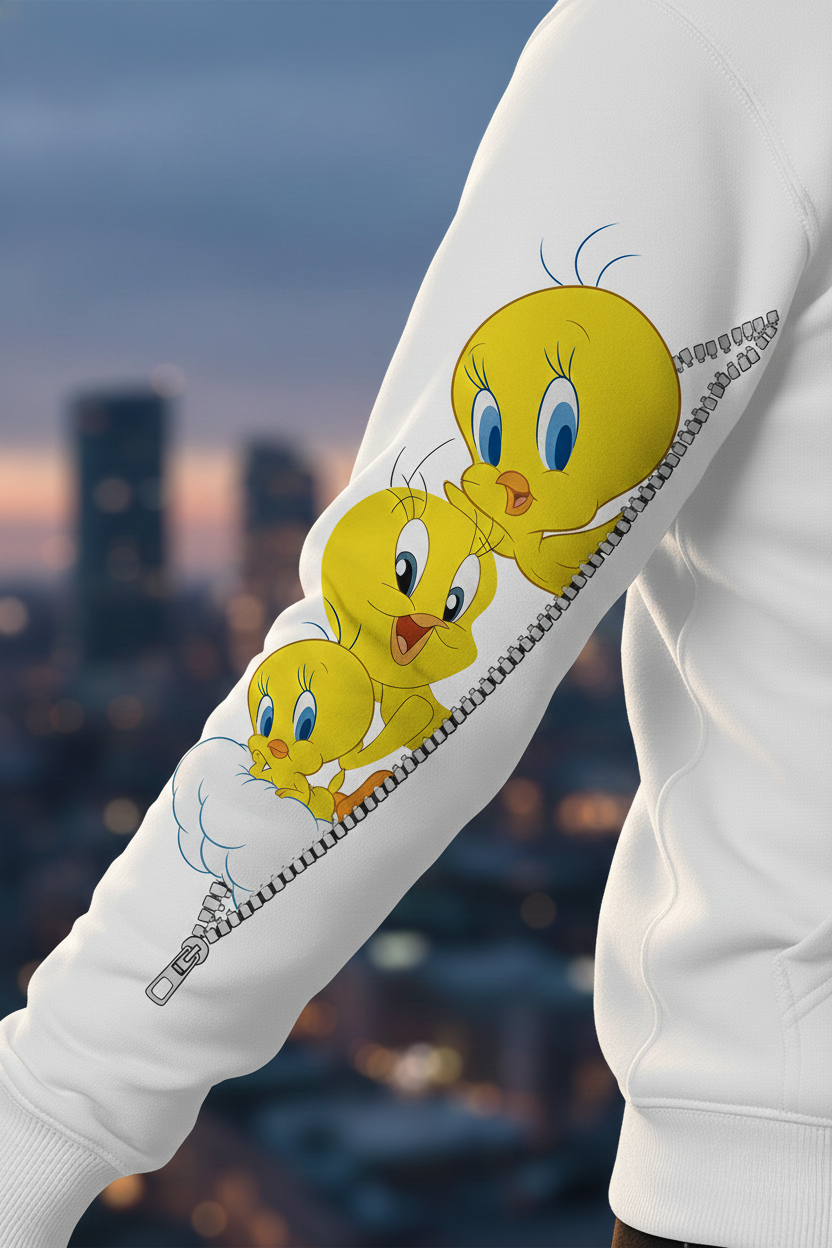 Özgün Tasarım: Kol kısmında yer alan yaratıcı fermuar efekti içerisinden bakan üç sevimli Tweety karakteri ile sıradan sweatshirtlerden ayrılın.